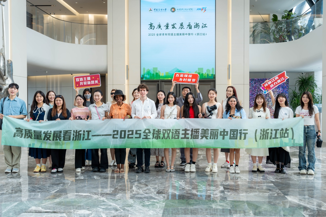 중국전매대학교와저장방송텔레비전그룹 교통의 소리가 공동 주최한 “고품질 발전으로 본 저장 — 2025 아름다운 중국행(저장 편)(高質量發展看浙江——2025美麗中國行(浙江站))” 행사가 7월 13일부터 17일까지 개최되었다. 중국, 네덜란드, 불가리아, 쿠바, 러시아, 한국, 일본 등 여러 국가에서 온 20여 명의 청년 이중언어 진행자들이 원저우(溫州)·융캉(永康)·진화(金華)·항저우(杭州)를 차례로 방문하며, 청년들의 다언어 시각을 통해 저장성이 농촌 진흥, 문화관광 융합, 현대 농업, 민영경제 및 산업 혁신 등 여러 분야에서 이룬 최신 성과를 다각도로 조명했다. 참가자들은 국제 교류의 언어를 매개로, 국내외 시청자에게 “시화강남, 활력저장(詩畫江南·活力浙江)”의 시대 이야기를 생생하게 전했다.